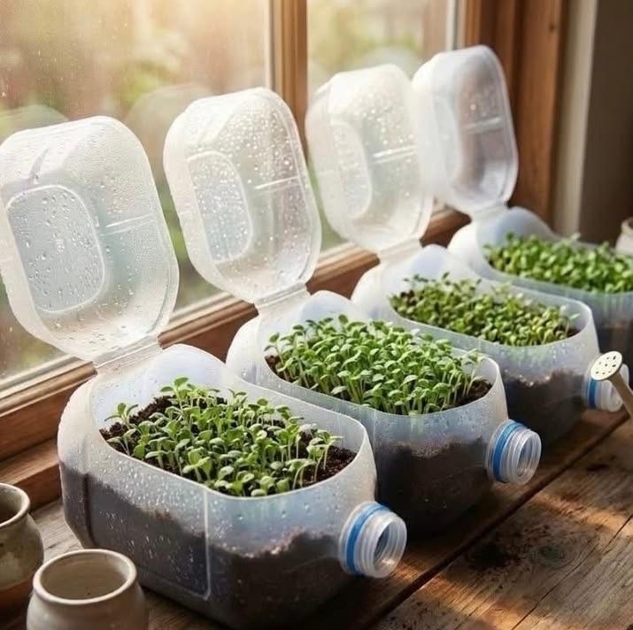 А вы знали, что пластиковые канистры легко превращаются в мини-парник? Отрезаем боковину — и готово надежное укрытие для нежных всходов!