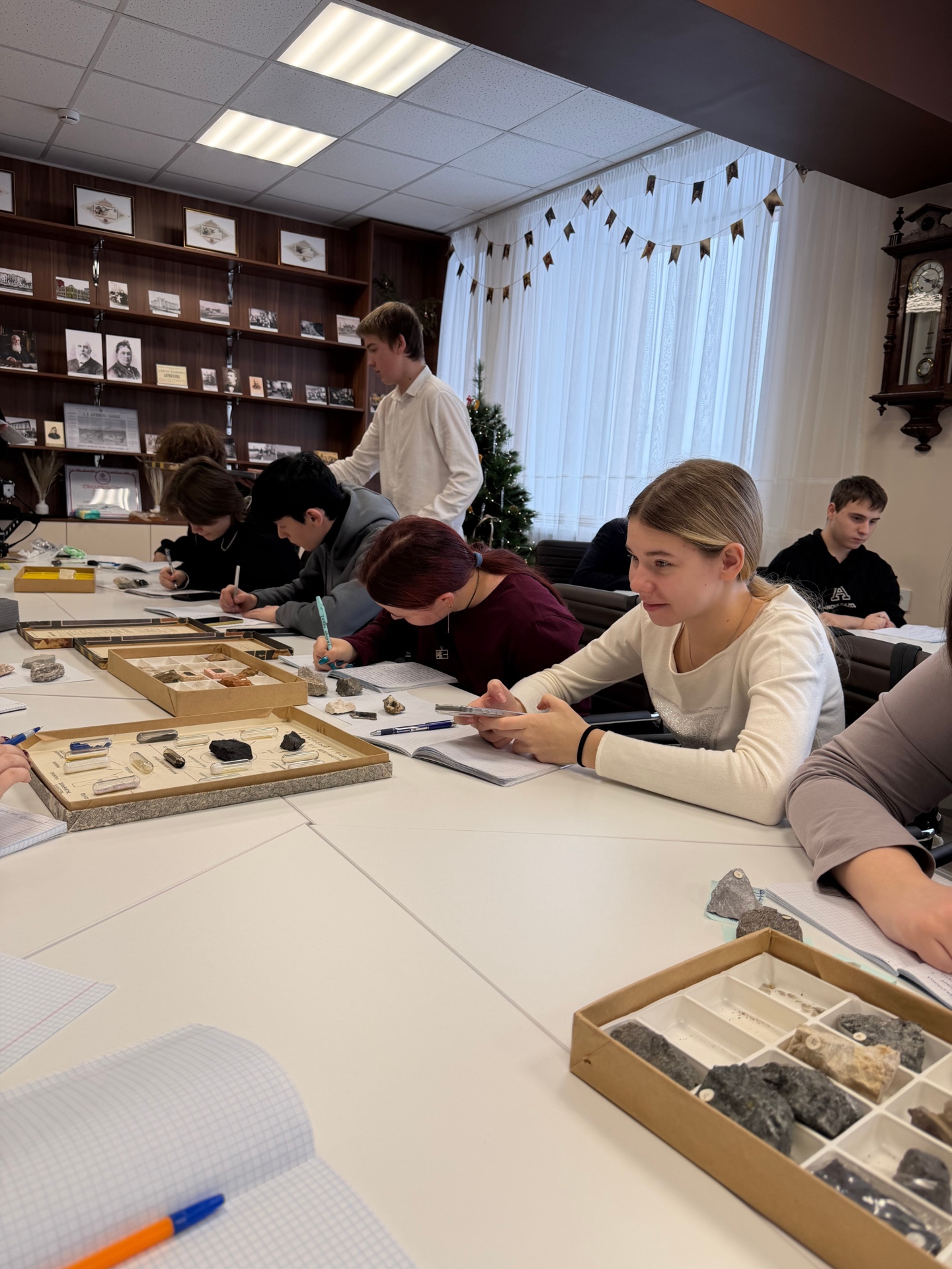 На практическом уроке ребята не просто слушали теорию, а в буквальном смысле разбирали её «по камешкам». Они работали с различными образцами минералов, изучая их свойства: блеск, твёрдость, цвет. 💎