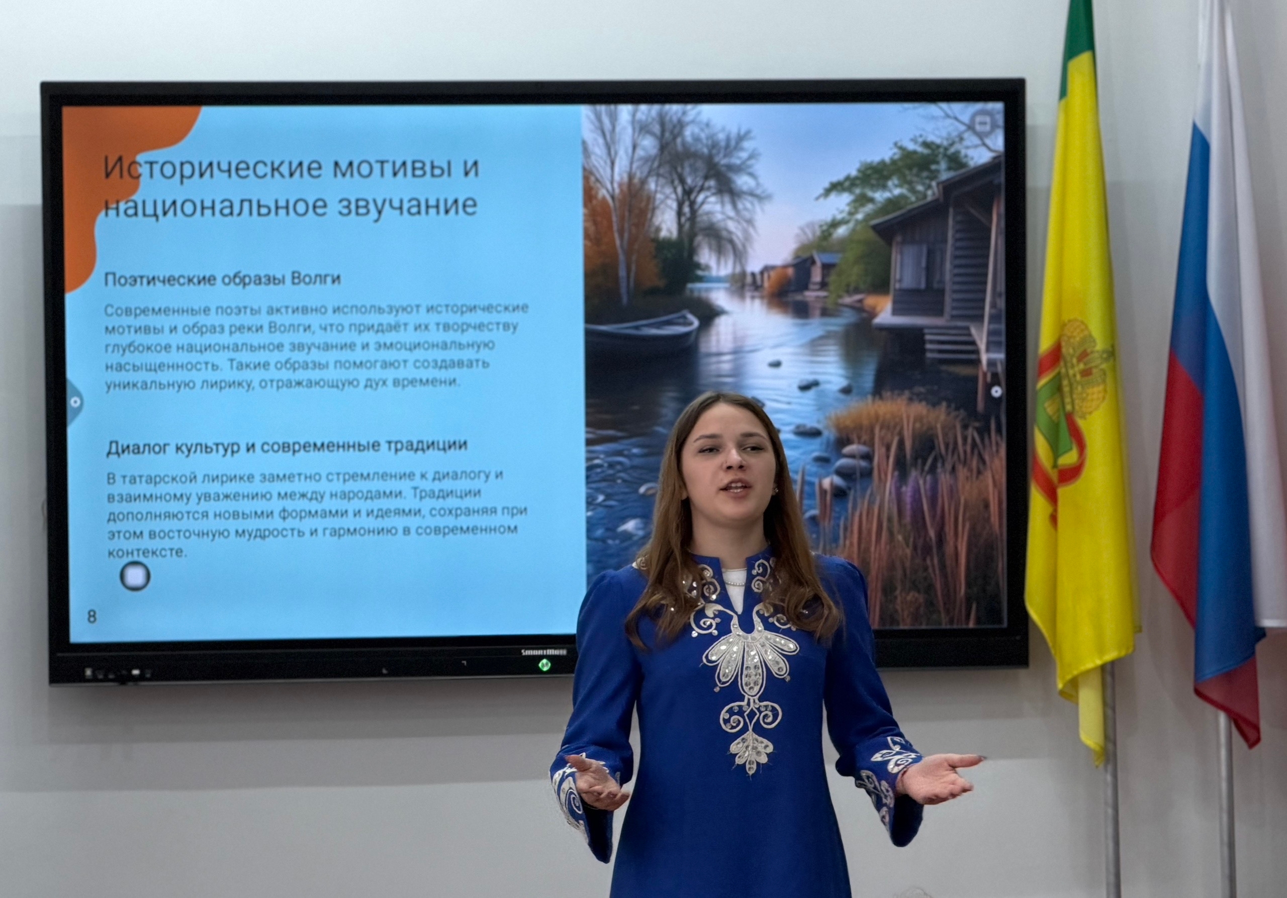 Встреча в формате литературной гостиной была посвящена презентации поэтического наследия народов Поволжья. Прозвучали образцы русской, татарской, чувашской и мордовской поэзии, объединённые темой Волги